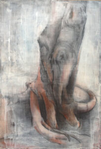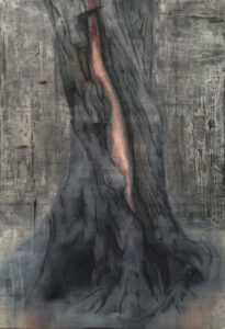 Особенно масштабные драмы звучат в серии живописных полотен «Деревья», представленных на выставке «ARBOR: жизненная форма», написанных на холстах акрилом, углем и сангиной. Аутентичные, необычные, очень энергичные портреты деревьев без фона в метафизической среде — ни земли, ни неба, стволы и ветви, иногда сильно напоминающие анатомию тела с кровеносными сосудами и мышцами, суставами и сочленениями…»