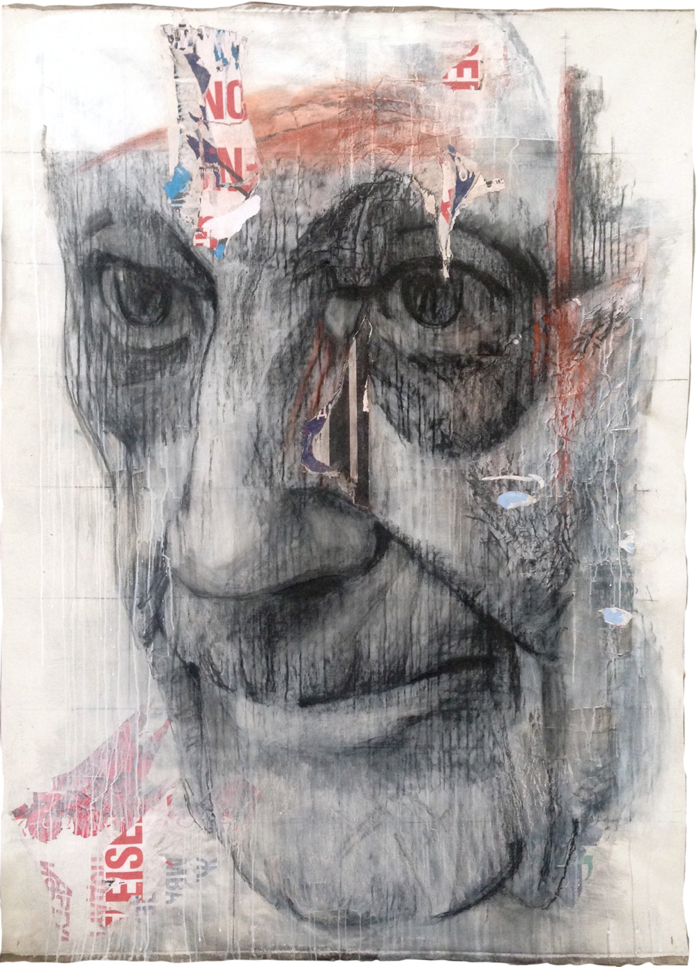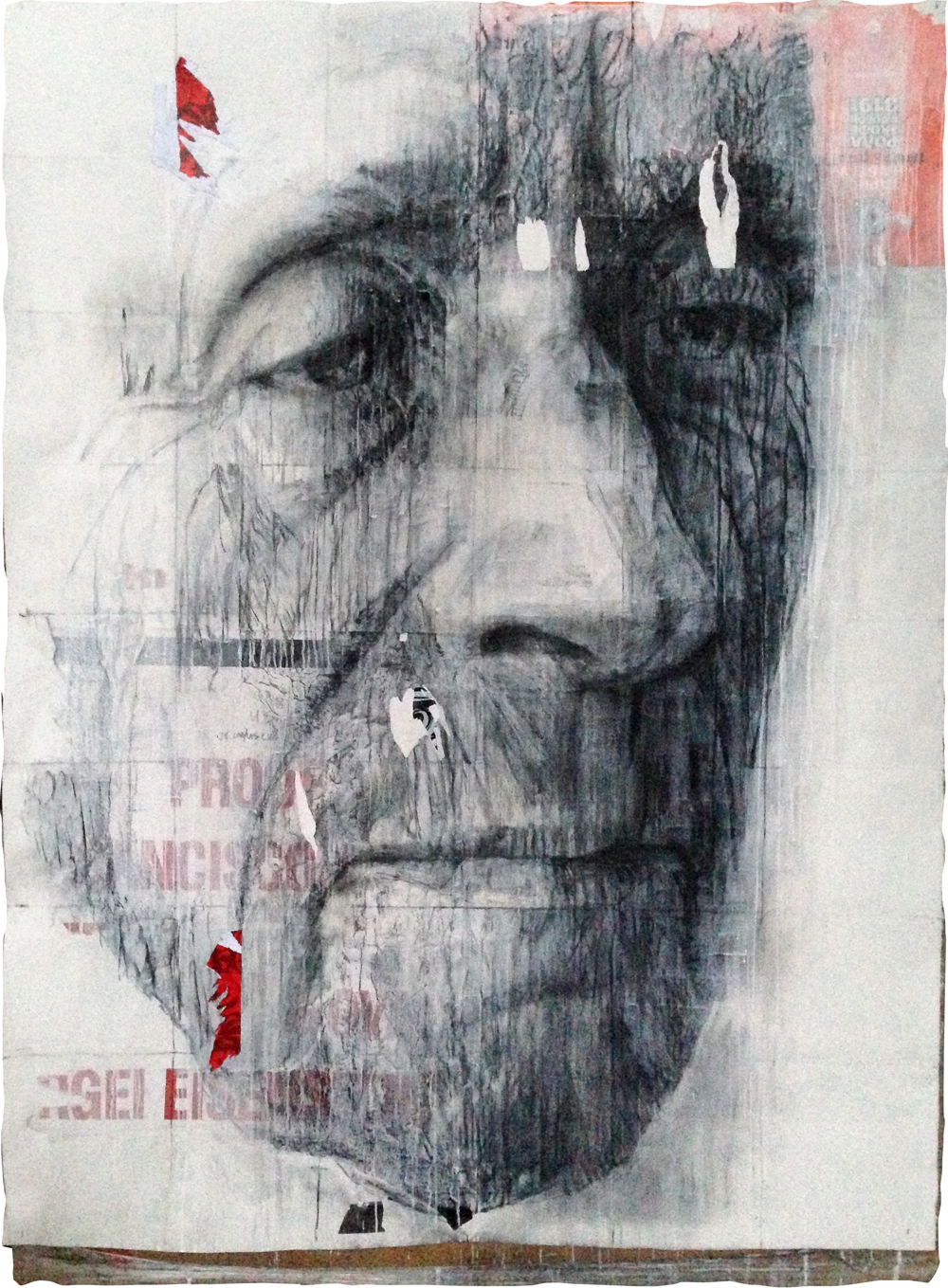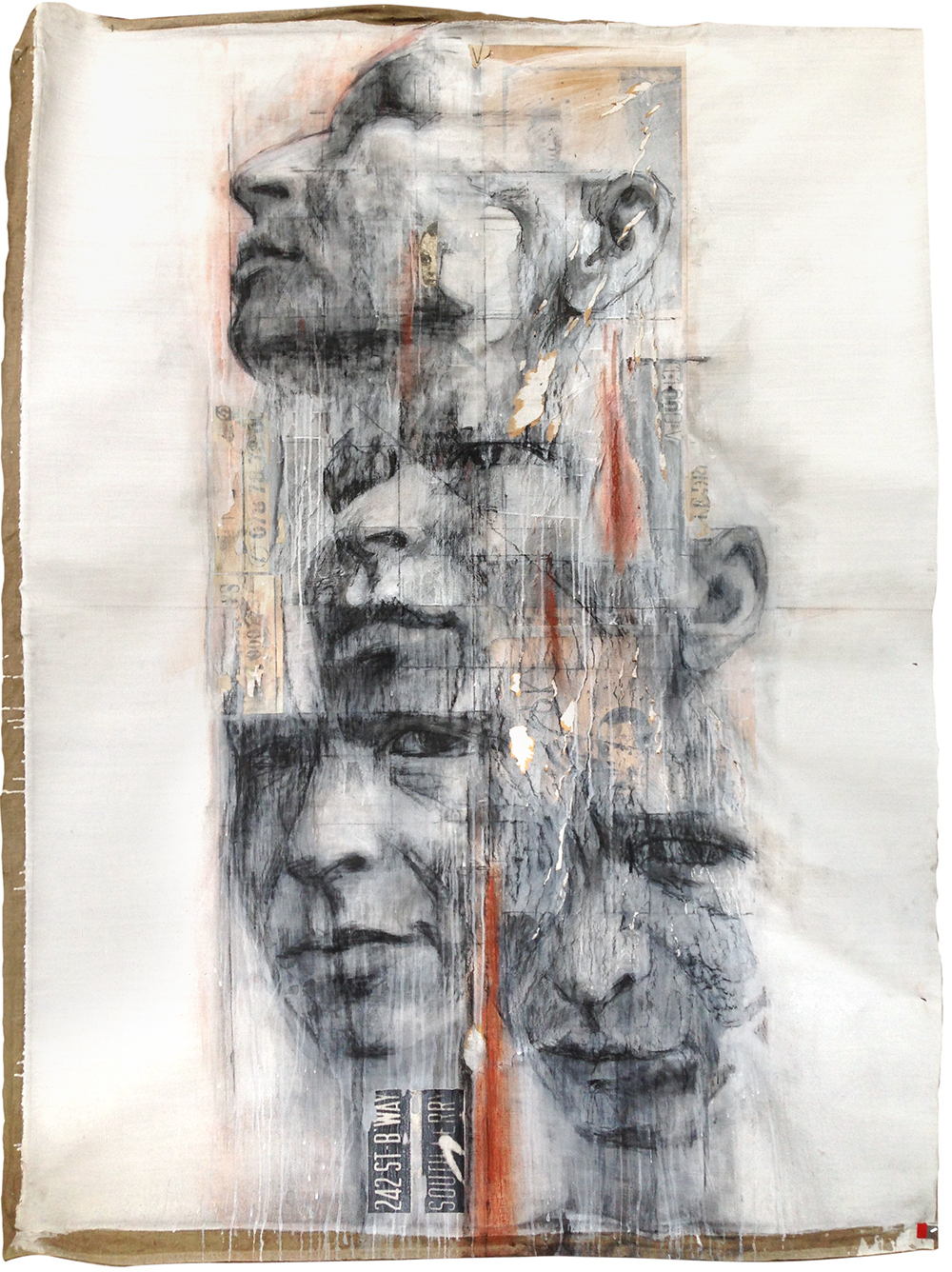 Портреты написаны на воображаемой стене с фрагментами афиш, фотографий, объявлений с малоразличимым текстом. Это приметы и следы мелькающего времени, на которых наш взгляд останавливается и тем самым фиксирует ускользающее мгновение.
