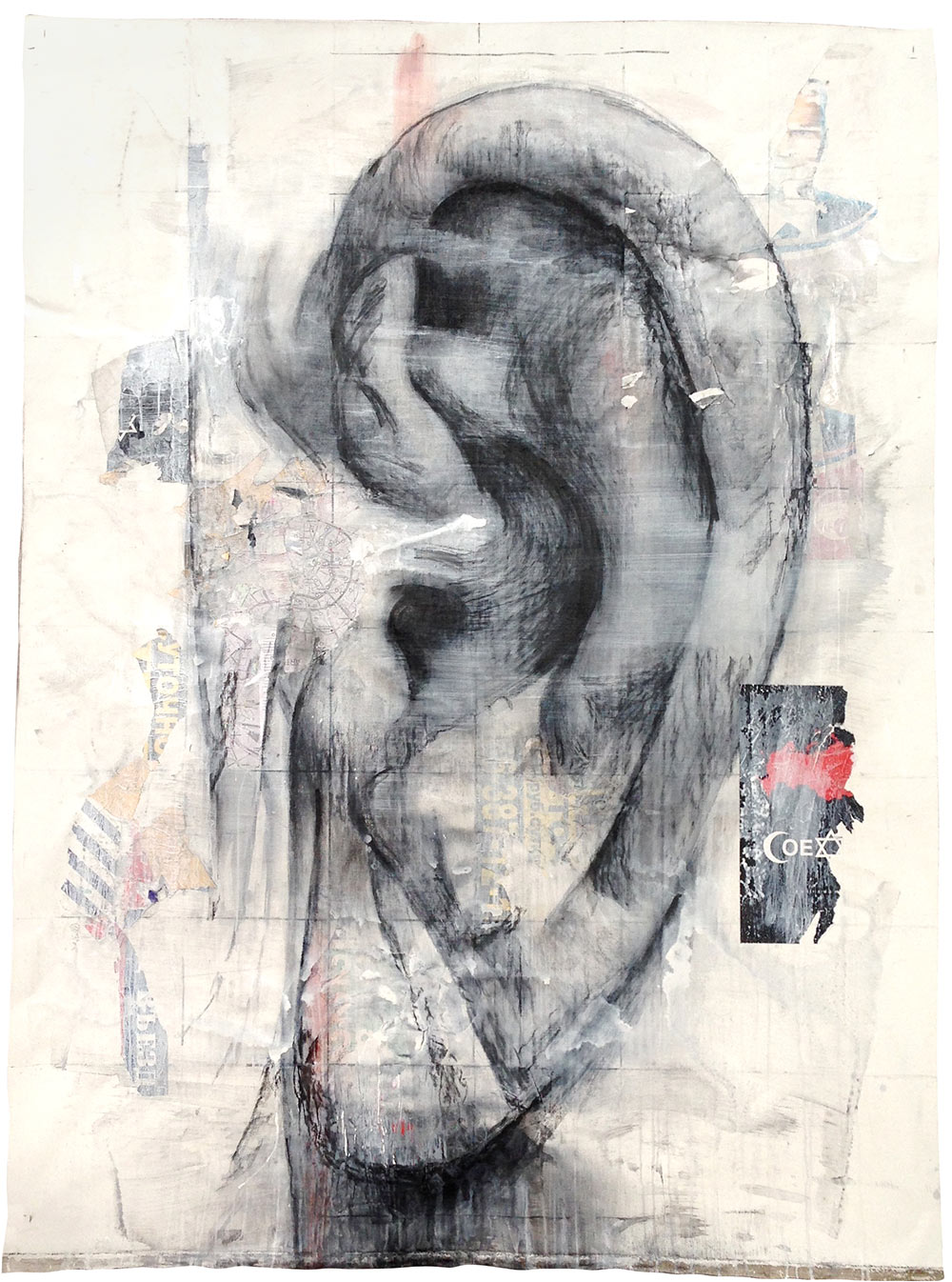 Образ наслаивающейся информации диссонирует с обнаженностью и ранимостью художника, да и любого человека.