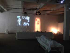 Выставка представляет собой инсталляцию и состоит из трех фото проекций (Рождение, Любовь, Рентген), одной проекции видео-арта (Кино) и пяти объектов, относящихся к темам Беженцев, Смерти, Войны).