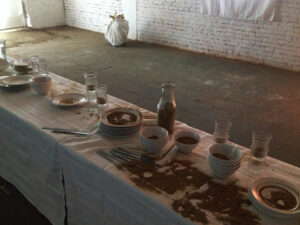 Именно проекция, а не рисунок или живопись, используется как художественное средство для того, чтобы подчеркнуть хрупкость, иллюзорность и временность событий. Одно изображение можно заменить на другое. Одно событие сменяется другим. Объемные объекты — как осколки или фрагменты той же жизни.